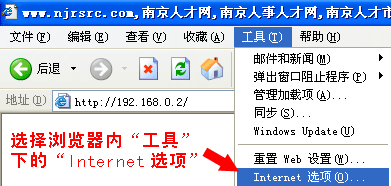 選擇瀏覽器工具欄內(nèi)“工具”下的“Internet選項(xiàng)”